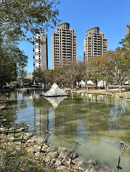 透過湖水的反射,讓這個展出有了2倍的美麗。