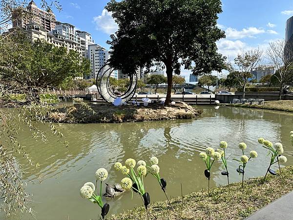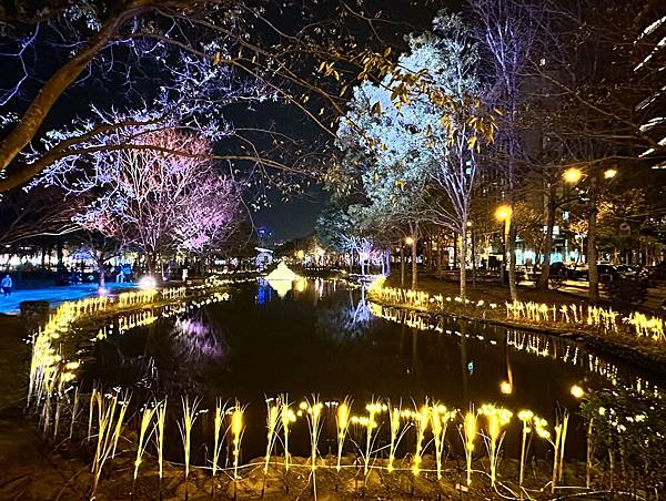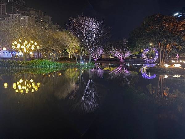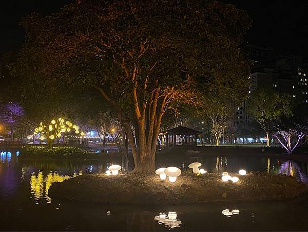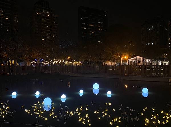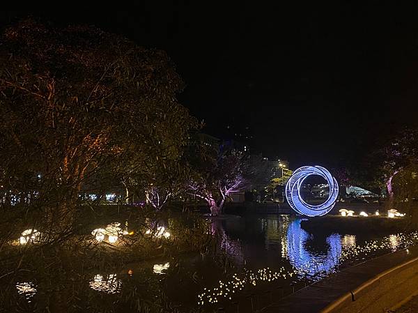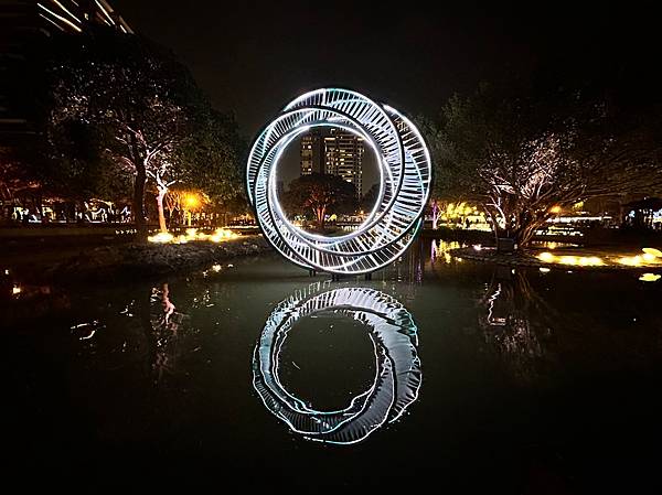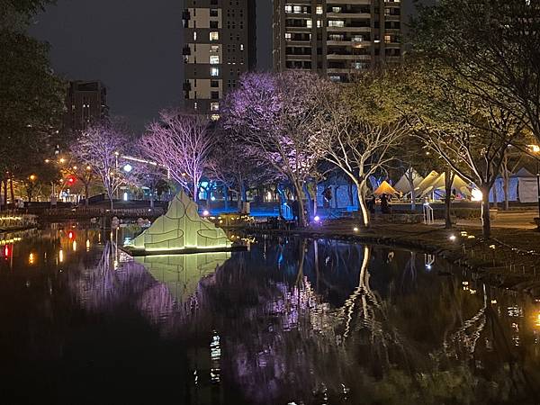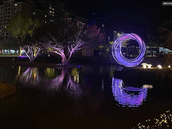 下圖水中的創作是徵件燈《匯流而上》藝術家:陳婉宜×許珮賢。