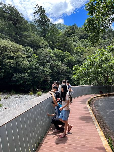 對了,在到露營區中間路段的這個轉彎處可以試著看看下方的七家灣溪,找找有沒有櫻花鉤吻鮭的蹤跡喔。