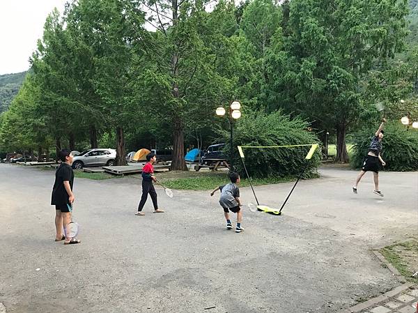 大人負責搭帳篷和炊事帳,小孩負責開始玩,遊戲的種類很多,下棋,紙牌,UNO......就放這個羽毛球好了。