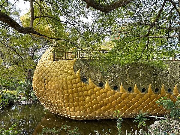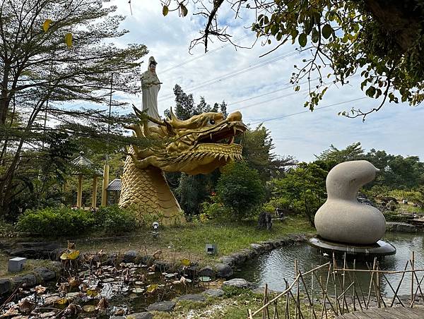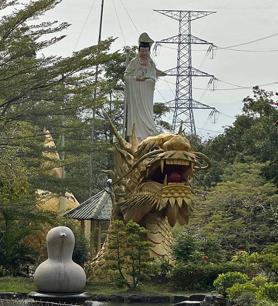 進入大門就可以看到一個醒目的金龍了,頭上還有一座觀音,這個金龍設計成一個船的模樣,是可以上去的。