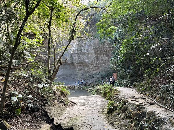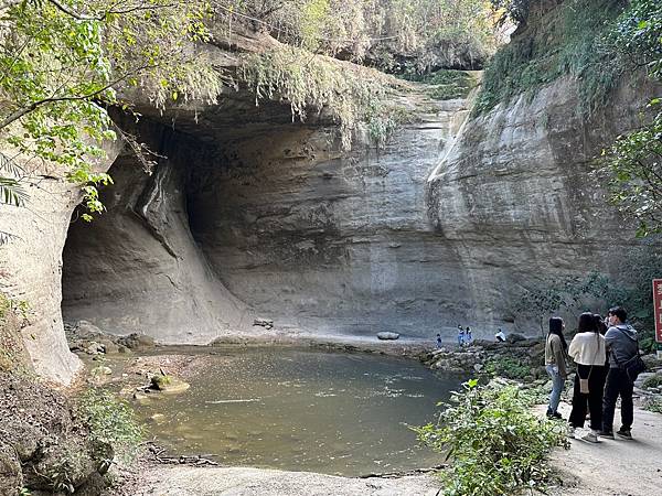沒看到台版吳哥窟有點失望,只好來附近的蝙蝠洞瀑布走走,這裡沒有一個明確的地址,但是導航有喔。現在的楠西蝙蝠洞已經有規劃戶外停車場,停車費目前是$50,旁邊還有在賣現沖咖啡,跟著指引走進森林步道,大約3~4分鐘就能抵達蝙蝠洞了。