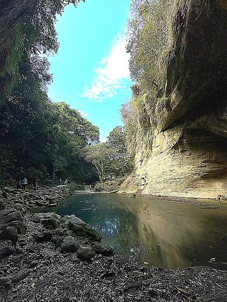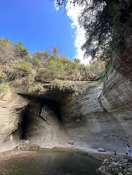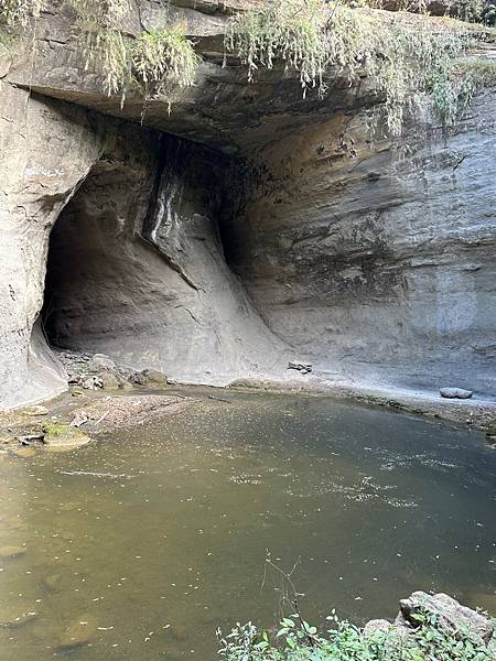走進蝙蝠洞瀑布,站在石頭上,抬頭能眺望藍天白雲,橋個角度還能拍出台灣形狀的天空....我們沒進去,因為爛泥巴不敢走。