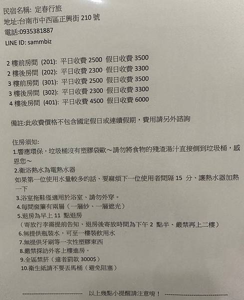 最後給大家看一下房間貼的價目表,我訂的房價雖然不是這個,但是現在看看訂房網站感覺當初貴了好多~好多....。