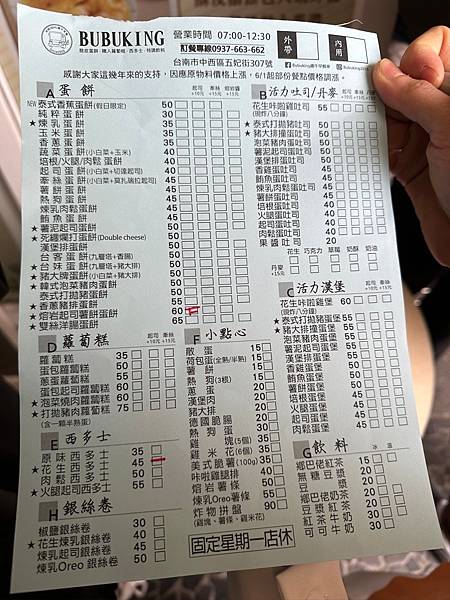 選擇沒有早餐的民宿,為的就是來台南找找美食,網路說五妃街應該是台南的蛋餅店最多的地方,其中生意最好的早餐店之一就是這家Bubuking鐵牛早餐車,剛好這家分店離住宿的點最近,所以就來試試了,不只一家店喔。
