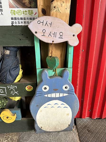 店名不知道有什麼故事,只看到牆壁有一部分的鐵牛車體,加上一些布偶娃娃,應該是櫻桃小丸子吧,這樣就可愛不少。