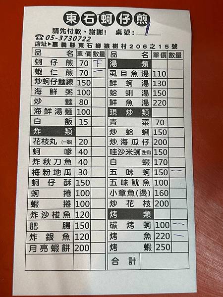 如果不知道吃什麼,牆上有12道人氣熱門餐點可以參考喔,拍得不好直接寫給大家參考,由第一名開始,分別是海鮮粥、蚵仔麵線、月亮蝦餅、清燙白蝦、蚵仔煎、炭烤蚵、哇沙米生蚵、花枝丸、烤魚、蚵嗲、蚵仔酥、蚵捲&蝦捲。