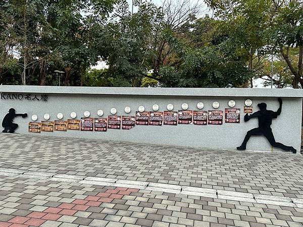 今天主要是安排來射日塔,外面的停車場蠻大的,停好車後走著走著居然先到<嘉義市KANO棒球場>,原來射日塔是在公園的深處,下面這是KANO名人牆,。