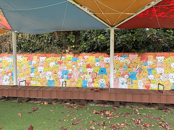 溜滑梯的盡頭有一區很可愛喔,這難道是家長休息區,還可以遮陽喔。