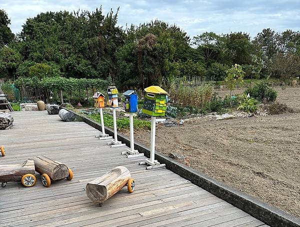 戶外遊戲區,旁邊應該是一片菜園吧。