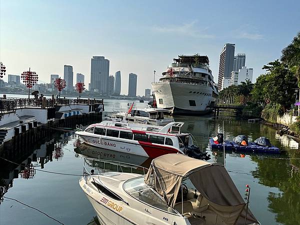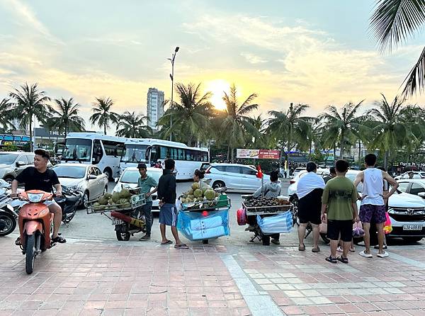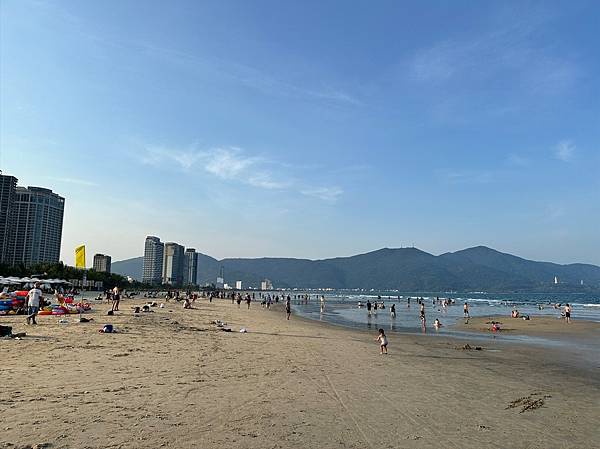 下圖遠方右邊山裡的白色物是山茶半島著名的巨大觀音像,高約70公尺,約20層樓高,是東南亞最高的觀音像。