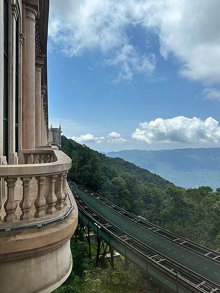 在中層的行程結束了,接著坐第2段纜車往最高層的 << 法國村 French Village>>前進,沿途可以看到許多地方正在施工,再晚個幾年來門票應該就更貴了,到時真的要住在這邊才划算了。