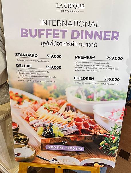 美居自助餐餐廳(La Crique)的餐點有越式、中式、西式、日式等。