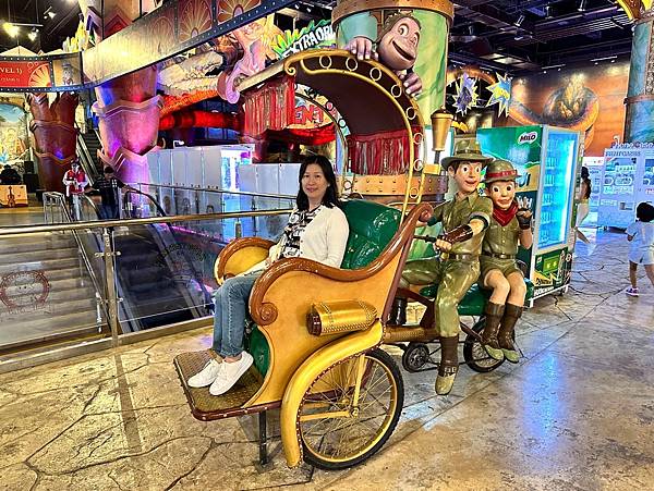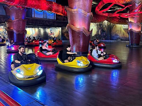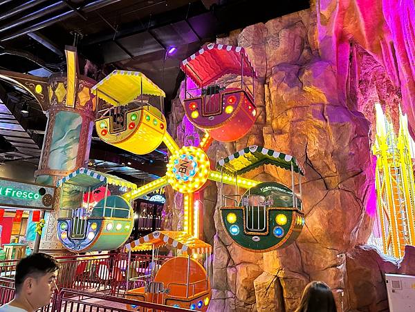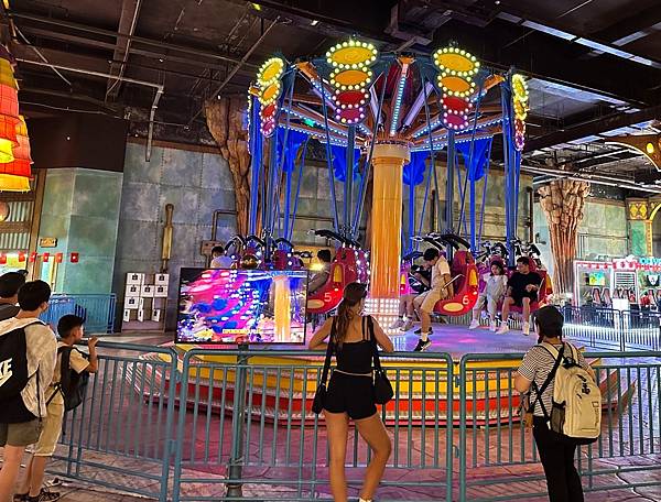 下方這個不知道是什麼遊樂設施,後來發現戶外有一個更大的,轉動起來的離心力將座椅都要拋飛出去的感覺,讓圍觀的遊客都加入驚呼刺激。