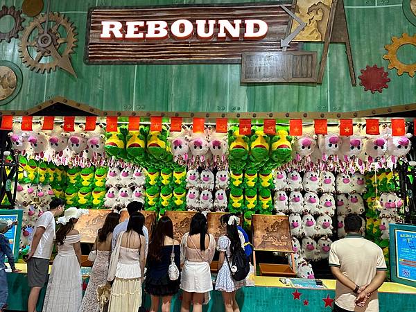 這是要另外收錢的套圈圈,8個圈=50,000,24個圈=100,000 VDN,套中的話工作人員會拉響鈴噹慶祝,所以遠遠的聽導噹噹噹就知道有人抱走大玩偶了。