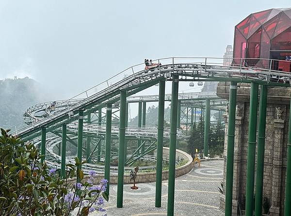 下方的尖塔就是夢想樂園 FANTASY PARK(室內遊樂園)的位置,這裡不收門票可以直接進去,不要被門口右邊排隊的人龍騙到,那是高山過山車 Alpine Coaster (LUGE室外滑車) 的購票處。