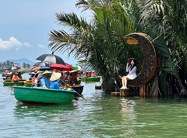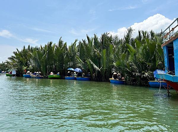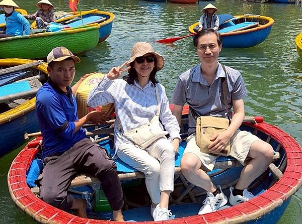 大家分批上竹桶船,每2個人一船,在等待其他人上船的時間,導遊要大家互相照相再分享。