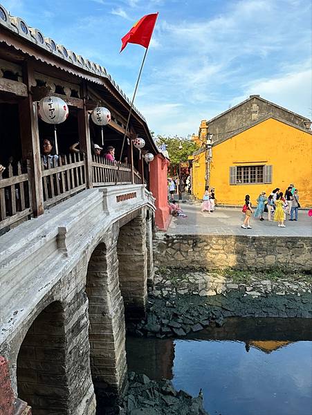 其中幾個代表建築也是大家到這必逛的,從這個是日本橋進入,又稱來遠橋,這已經是會安古鎮地標建築,連結中國街區與日本街區。