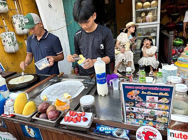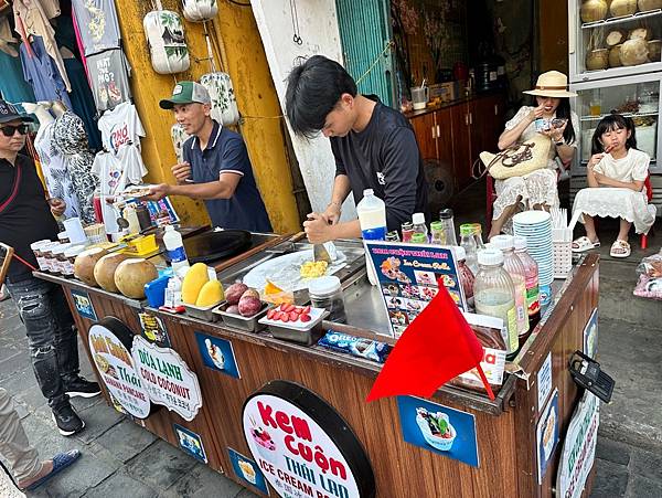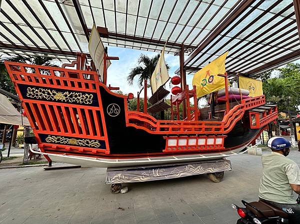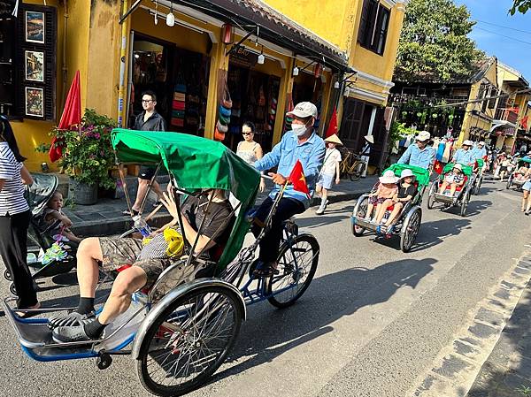 汽機車不能進入會安古鎮,所以三輪車變成新興的行業,而位置的設計是當初主人或是乘坐的人們不想聞到車伕的汗臭味,也可以方便看到風景,所以座椅設計成前面,搭乘半小時大約台幣400左右,有興趣可以體驗看看。