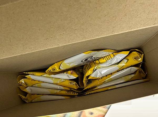 紙盒內是隨手包,很像是小土司上有一層醬,吃起來有一點點像是花蓮的奶油酥條,但是沒那麼乾,搭配表層的醬,好吃。