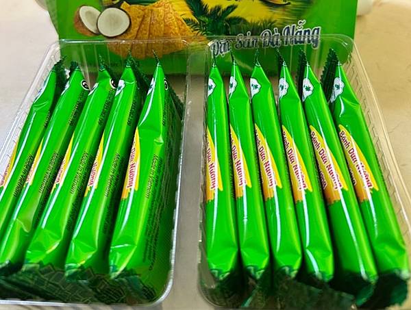 越南特產的第一排糖聽說不太甜,以奶油、花生、腰果為餡,搭配沾滿椰絲的脆皮,吃起來相當有層次,搭配茶品、咖啡一起吃相當美味!