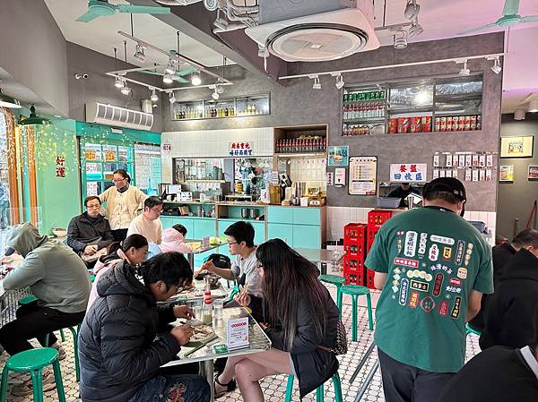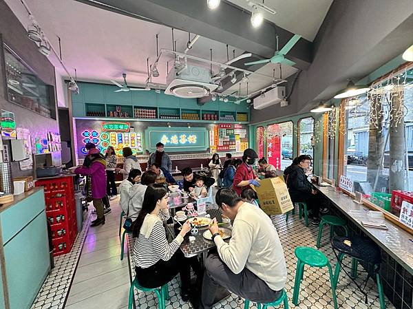 裝潢以藍綠色調為主軸,地板是復古花磚,有香港的感覺,也有眷村的感覺,店內不時還播放著粵語老歌,如果再聽到滿滿的粵語,不說還以為來到香港了,現在這裡不只是用餐的好地方,也是網美拍照的好地方了。