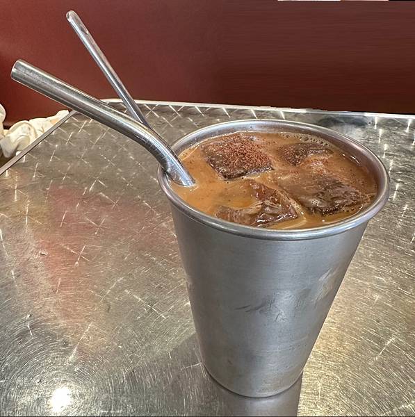 鴛鴦奶茶(109元),沒看到絲襪奶茶,點鴛鴦奶茶試試,咖啡和奶茶混合後加上表面灑得不知道是不是阿華田,一點點的衝突但不違和也不錯。