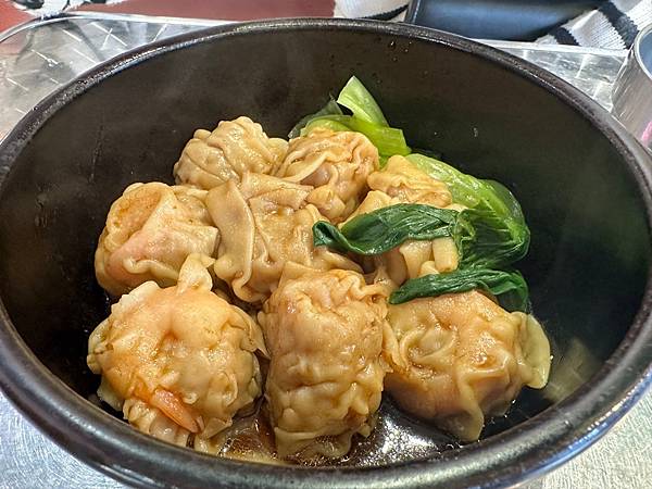 鮮蝦雲吞8顆(215元),說真的這價格好像有點貴,但是咬下後是整整一隻蝦子,Q彈的鮮蝦加上滿滿的肉餡,可以接受了。