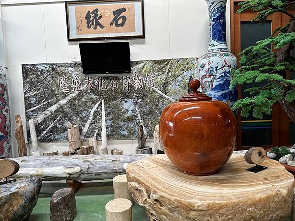 來田尾意外發現這家隆盛木化石博物館,查了一下占地五百坪,館藏超過三千件木化石及樹化玉〈又名樹玉〉,為亞洲最多元木化石、樹化玉博物館。木化石的形成年代約在一億四千五百萬到兩億五千萬年前,因地殼變動、火山爆發而造成。木化石、樹化玉的特殊性在於雖然其樹形猶存,但已被置換為肉質如玉的化石,其珍稀性由此可見。本館另收藏有藍寶、花寶、葡萄玉、紅碧玉、玉隨、瑪瑙、貝類化石等珍貴收藏品。官網
