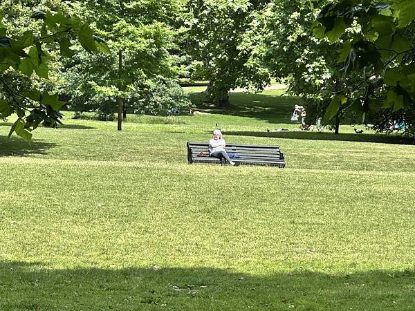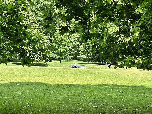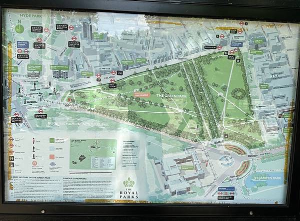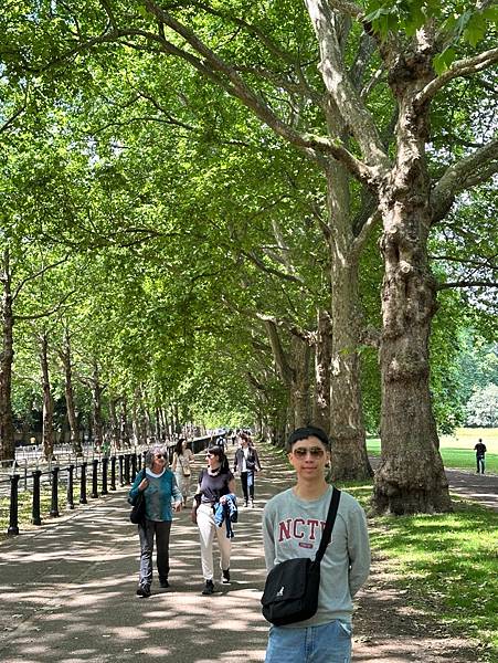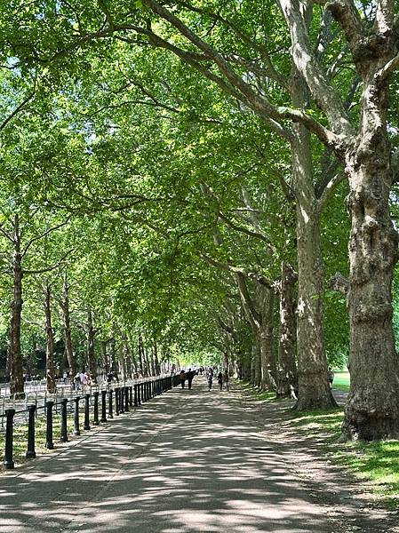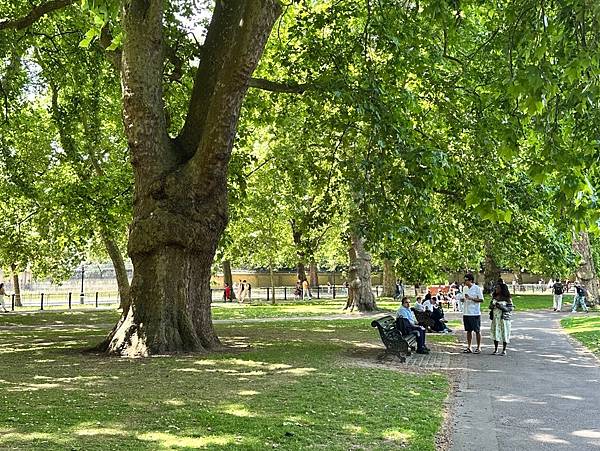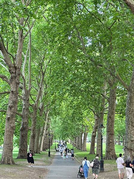 出了加拿大門就是有名的<綠園>了,綠園面積約 40 英畝,以其簡樸的自然風光聞名。與海德公園或聖詹姆斯公園不同,這裡沒有湖泊、紀念碑或花壇,主要由大片草坪和成排的大樹組成。這種簡潔的設計最初是為了讓公園更自然,也讓遊客能更放鬆地散步或野餐。