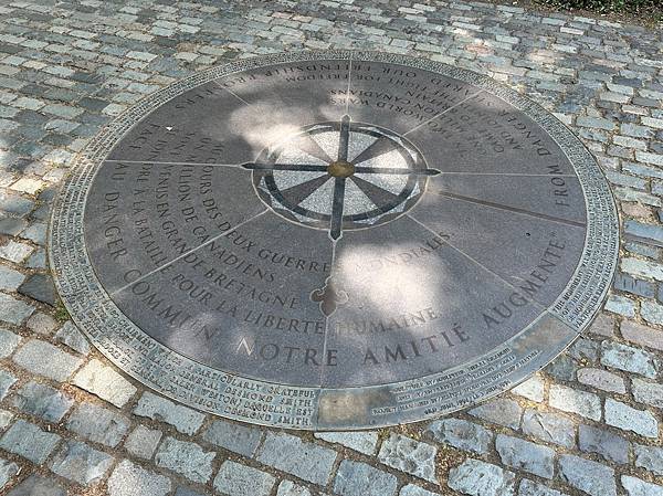 石碑上刻有英法雙語的銘文,內容大致是: 「為人類自由,我們的友誼得以發展,我們的友誼從危險中增長。」