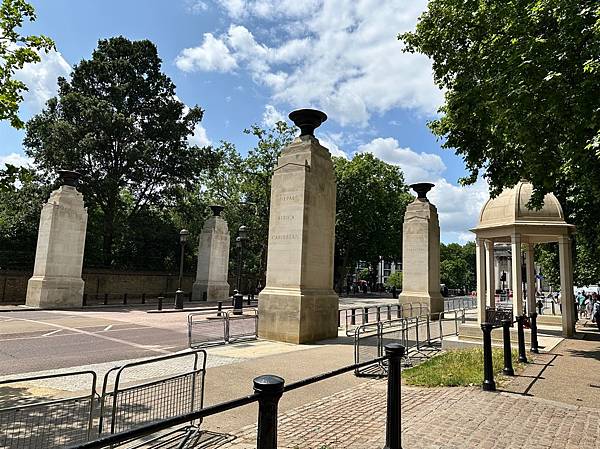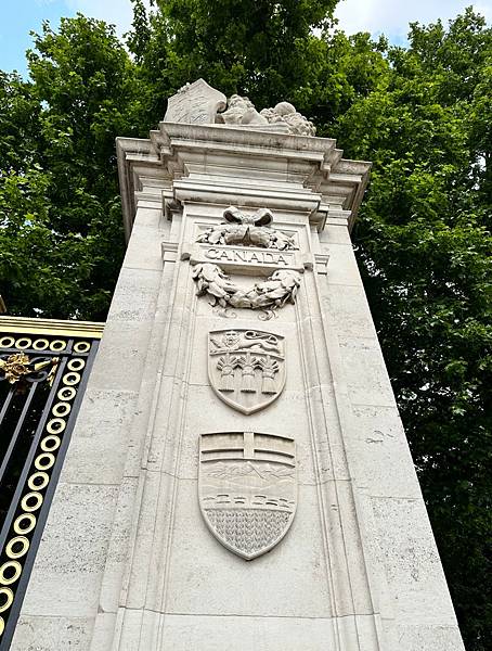 繞著白金漢宮正門周圍走可以發現幾個門,下面這裡是加拿大門 (Canada Gate),這是為了紀念加拿大在第一次世界大戰中的貢獻而建立的,是維多利亞女王紀念碑周圍大型門戶的一部分。