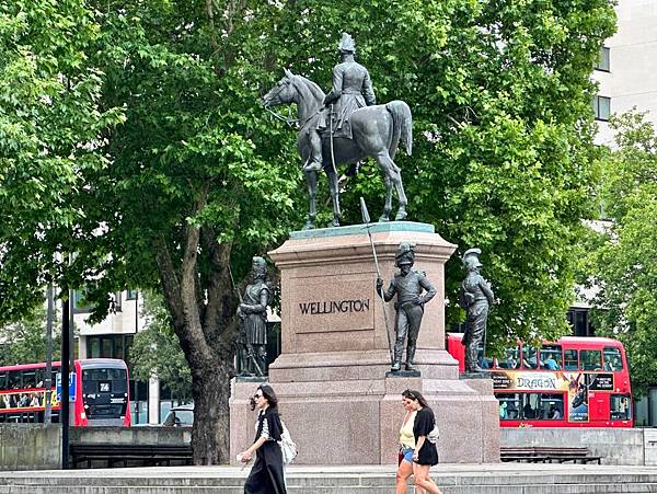 旁邊還有一座<威靈頓公爵騎馬像>,這座雕像是為了紀念威靈頓公爵 (Duke of Wellington),他在滑鐵盧戰役中戰勝拿破崙而聞名。
