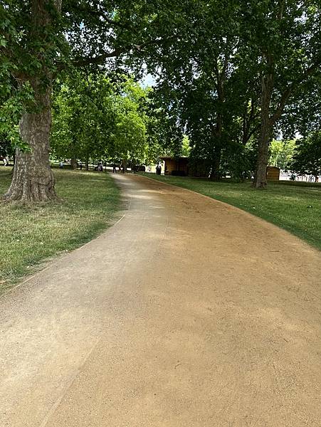 進入後就是海德公園了,這裡一樣是大樹林立,但是特殊的是有一條步道是黃土地。