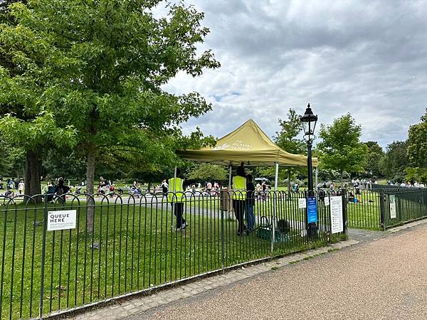 走了這麼久終於看到一家商店了,這是蛇形湖畔的蛇形吧 (The Serpentine Bar & Kitchen)。這是一家受歡迎的咖啡館和餐廳,位於蛇形湖的東側,是一個非常適合遊客和當地人休憩的地方。