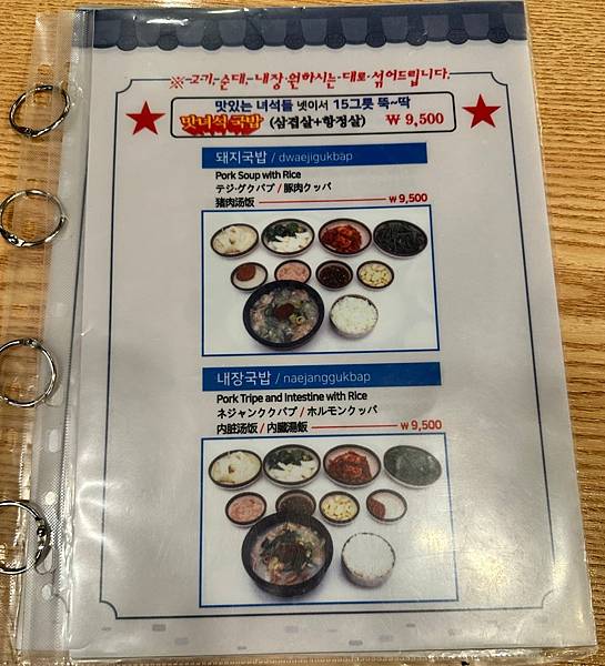 菜單也很簡單,我們直接點招牌餐點 - 豬肉湯飯 (돼지국밥)。