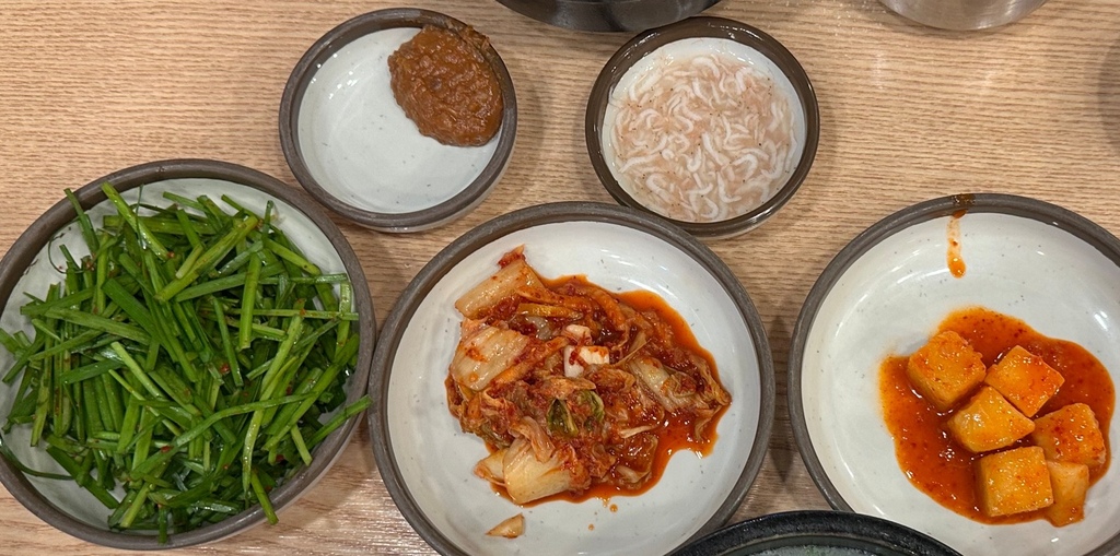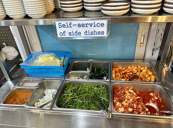 旁邊一區有小菜,有需要的話是可以無限吃到飽的。其中上面中間的綠色辣椒應該是有名的青陽椒,聽說會很辣,所以沒有上桌,有吃辣的人可以試試。