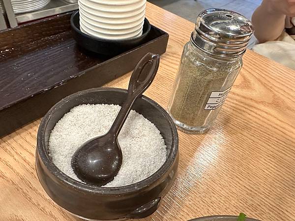 白色的是鹽巴,罐子裡的是胡椒粉。